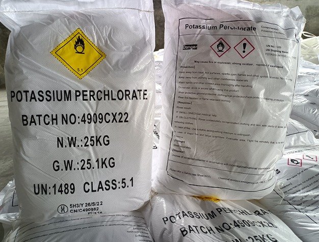 Hóa chất KClO4 có tỷ lệ kali, clorin và oxy là 1:1:4, thường được sử dụng trong công nghiệp sợi, ngành hóa học, trong các loại pháo hoa và tên lửa, cũng như trong phân bón.
